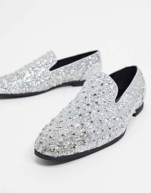 Sparkly sale silver loafers